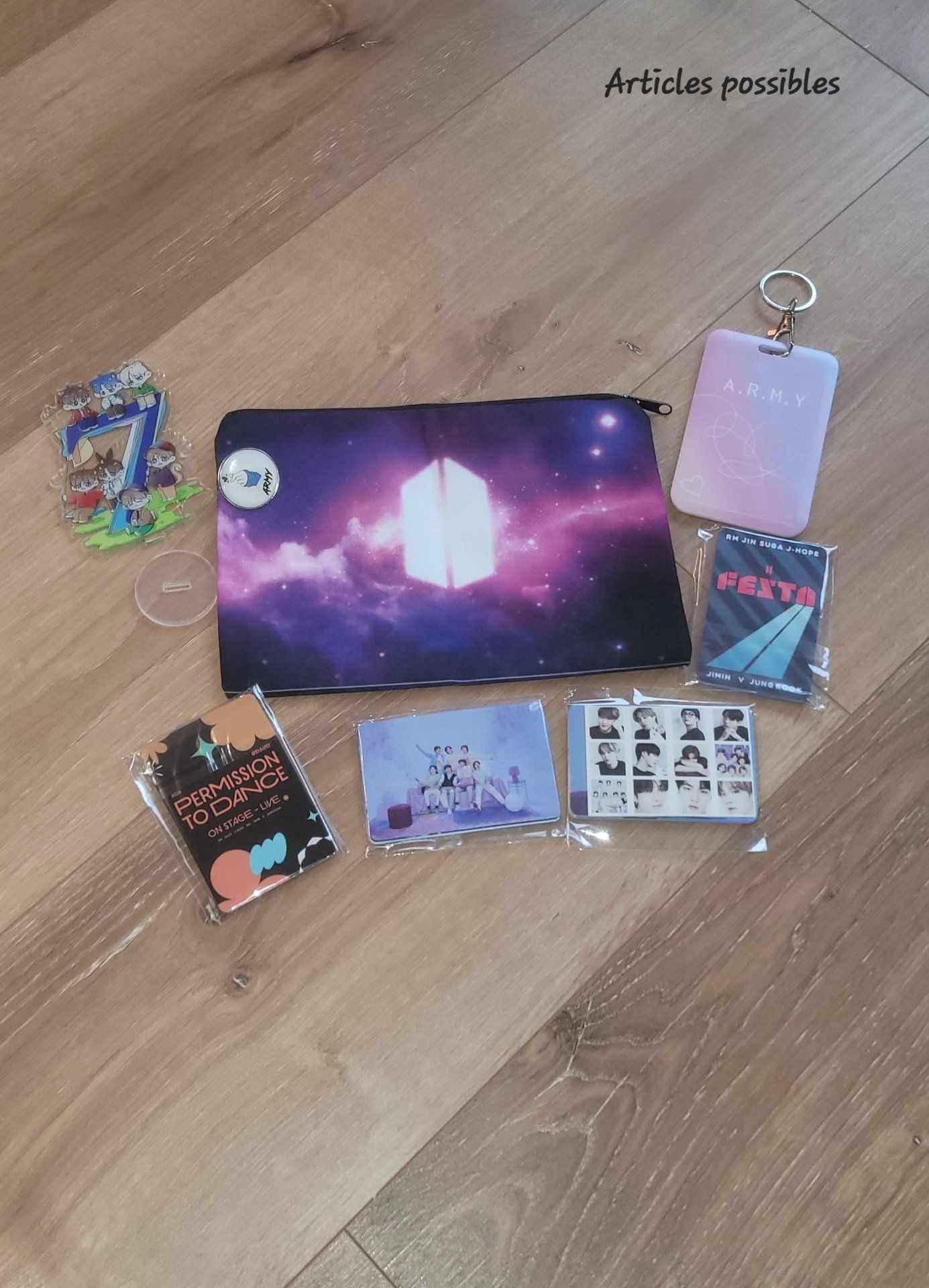 • 1 pochette – parfaite pour ranger tes photocards ou ton petit merch.